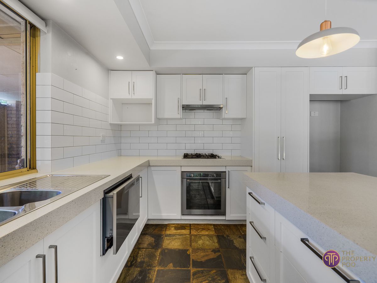 Inside, the home features two separate living areas and an open-plan kitchen, dining and living zone filled with natural light. The kitchen is a real standout with an island bench, dishwasher drawer, stainless steel gas cooktop and oven, making it ideal for everyday living and entertaining.