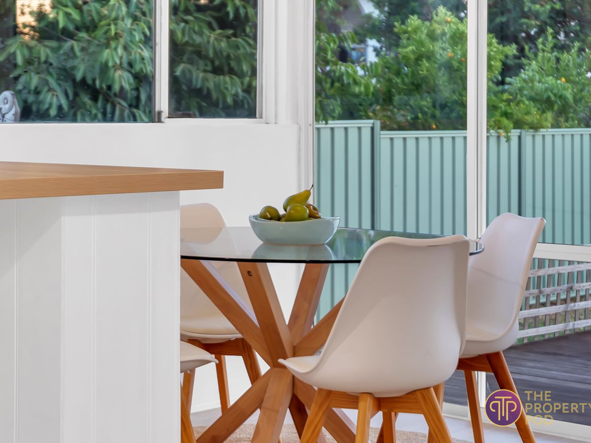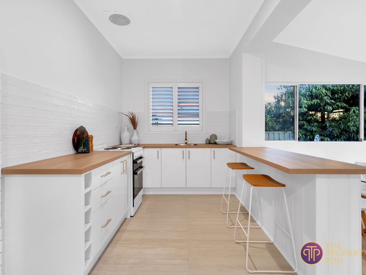 Through the arch and into the heart of the home, a sunken dining area offers garden views while the brand new kitchen has ample bench space for those culinary masterpieces, electric cooktop and oven, and dont forget the wine rack!