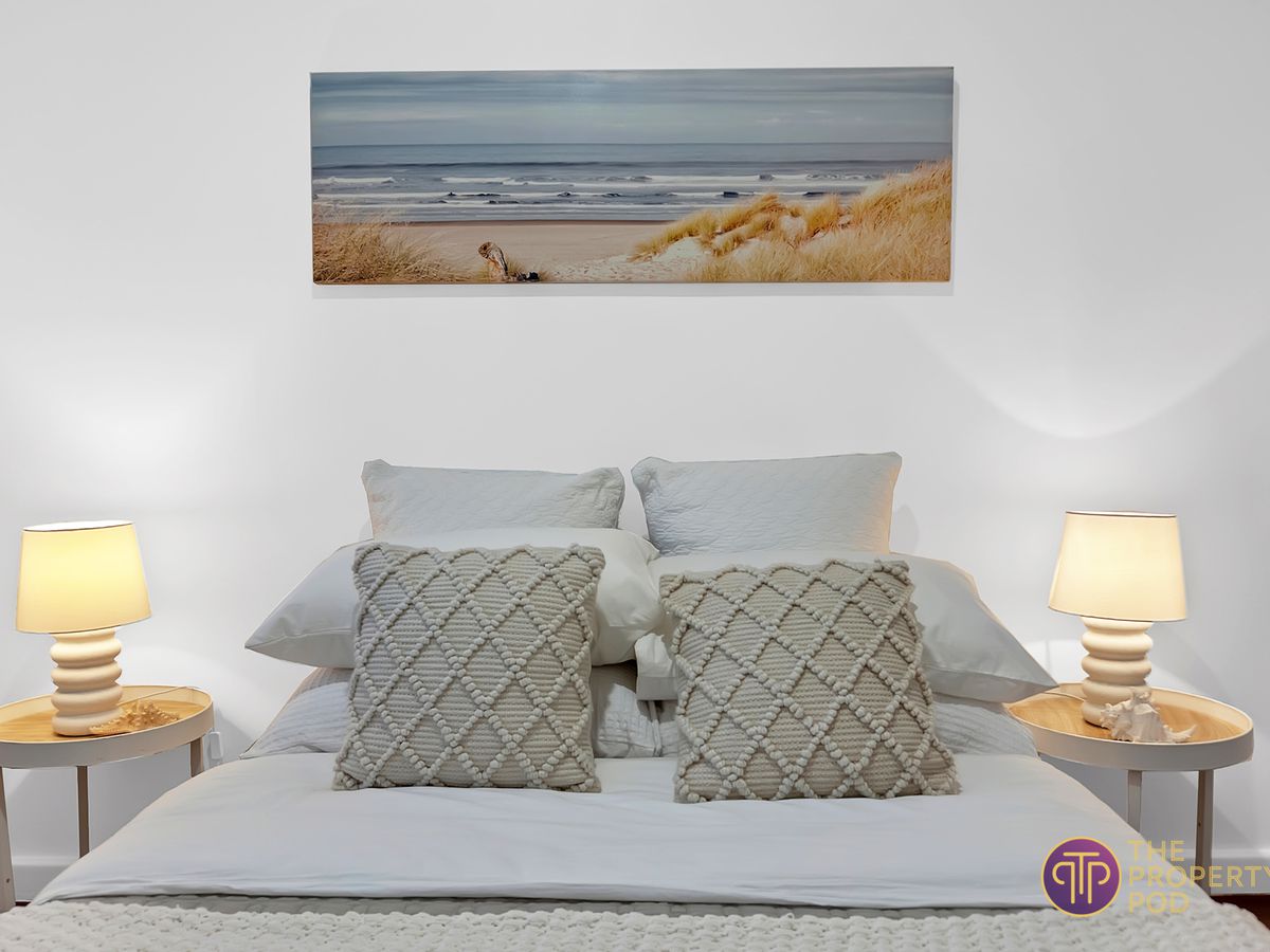 The bedrooms are a great size with built in wardrobes and the bathroom has wooden cabinetry and stone benchtops flowing on from the neutral colour palettes used in the rest of the home. In summer the evaporative air-conditioning ensures your comfort.